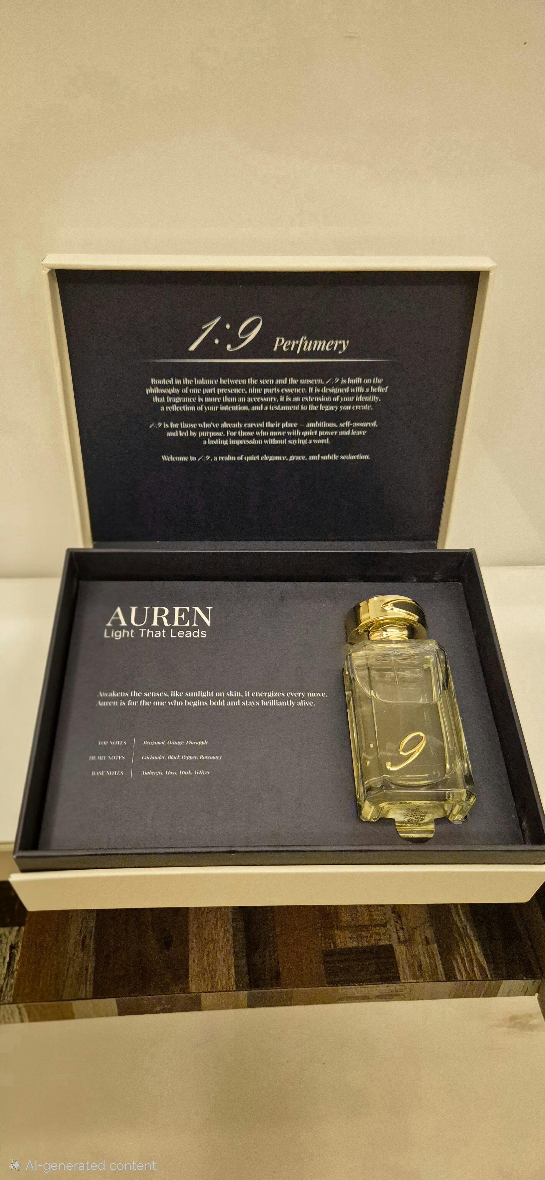 Auren is more than a fragrance—it is brilliance in motion, light that leads. Like the first rays of dawn, it awakens with the brightness of bergamot, orange, and pineapple, alive with vitality. The journey then ignites with the bold warmth of black pepper, coriander, and rosemary, before settling into the timeless depths of ambergris, moss, musk, and vetiver—a trail both luminous and enduring.